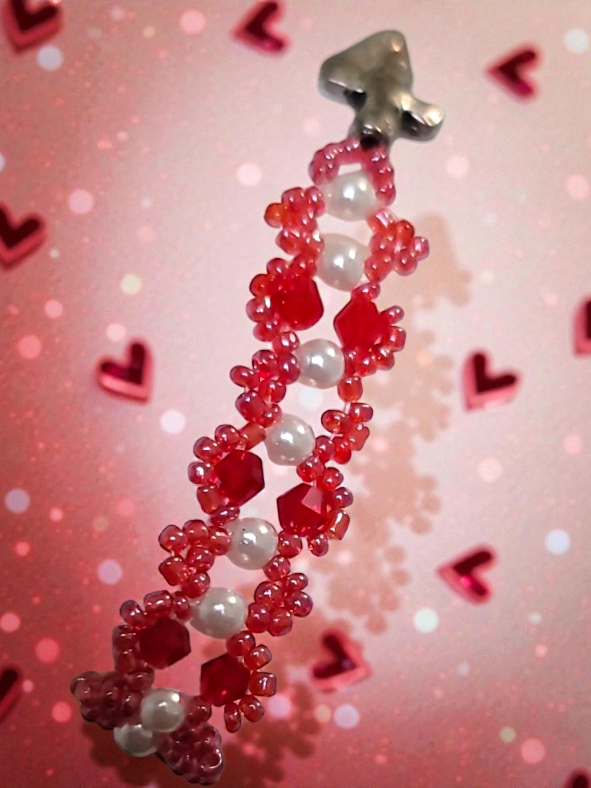 Materials: Red Swarovski crystals, white Swarovski pearls