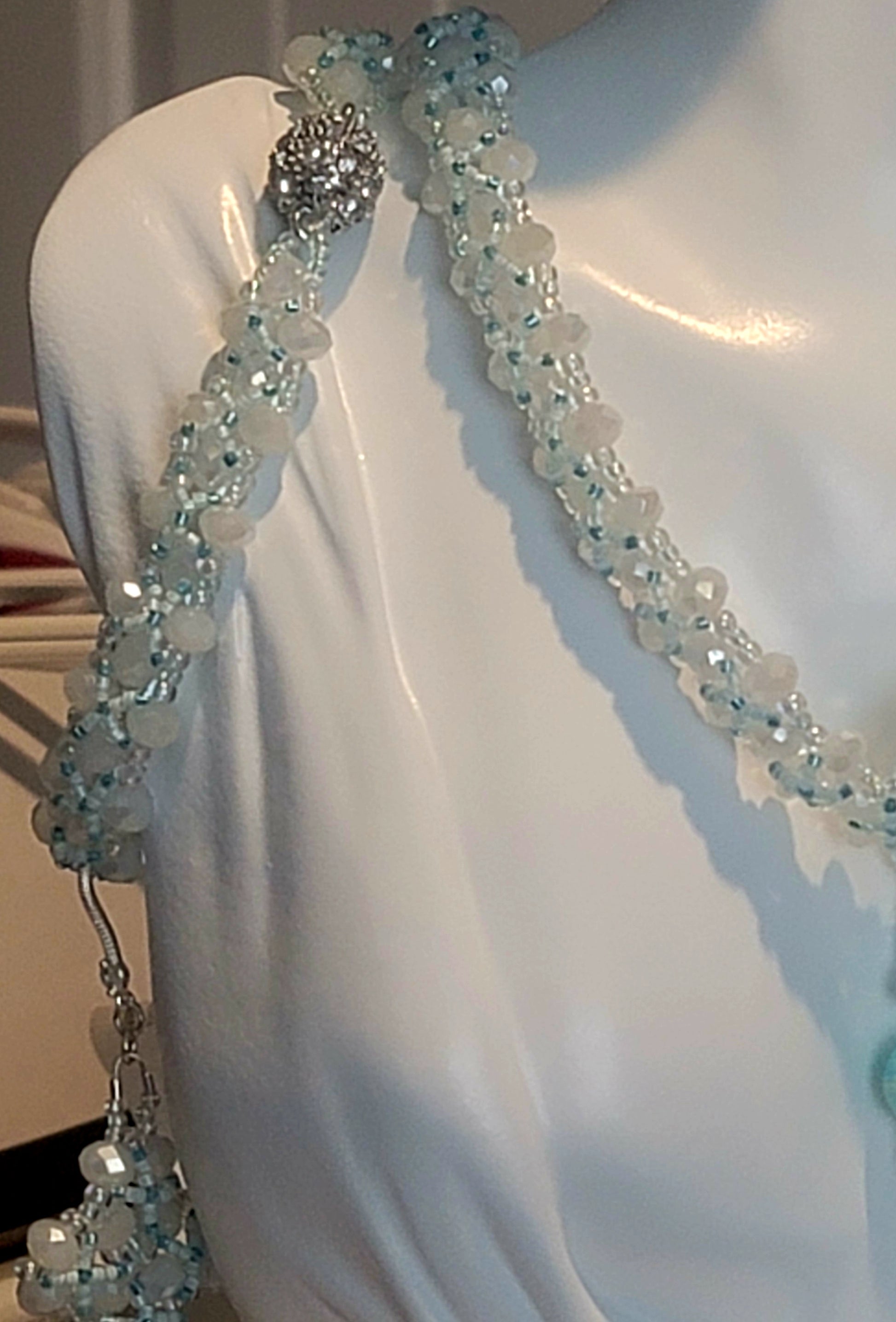The Mint Jade tones evoke restoration, wisdom, and divine breath, while the white crystals reflect purity, peace, and spiritual light. Together, they form a wearable sanctuary—perfect for healing gatherings, prayerful reflection, or everyday grace. "Garden of Clarity" rests on the skin like a blessing, inviting calm and clarity with every shimmer.
