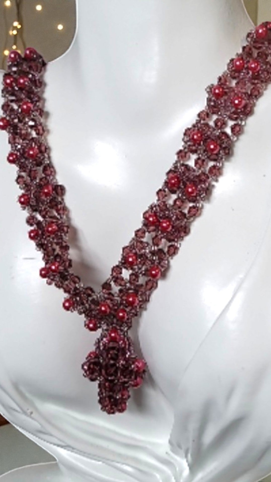 Materials: Mauve Swarovski crystals, pink Swarovski pearls