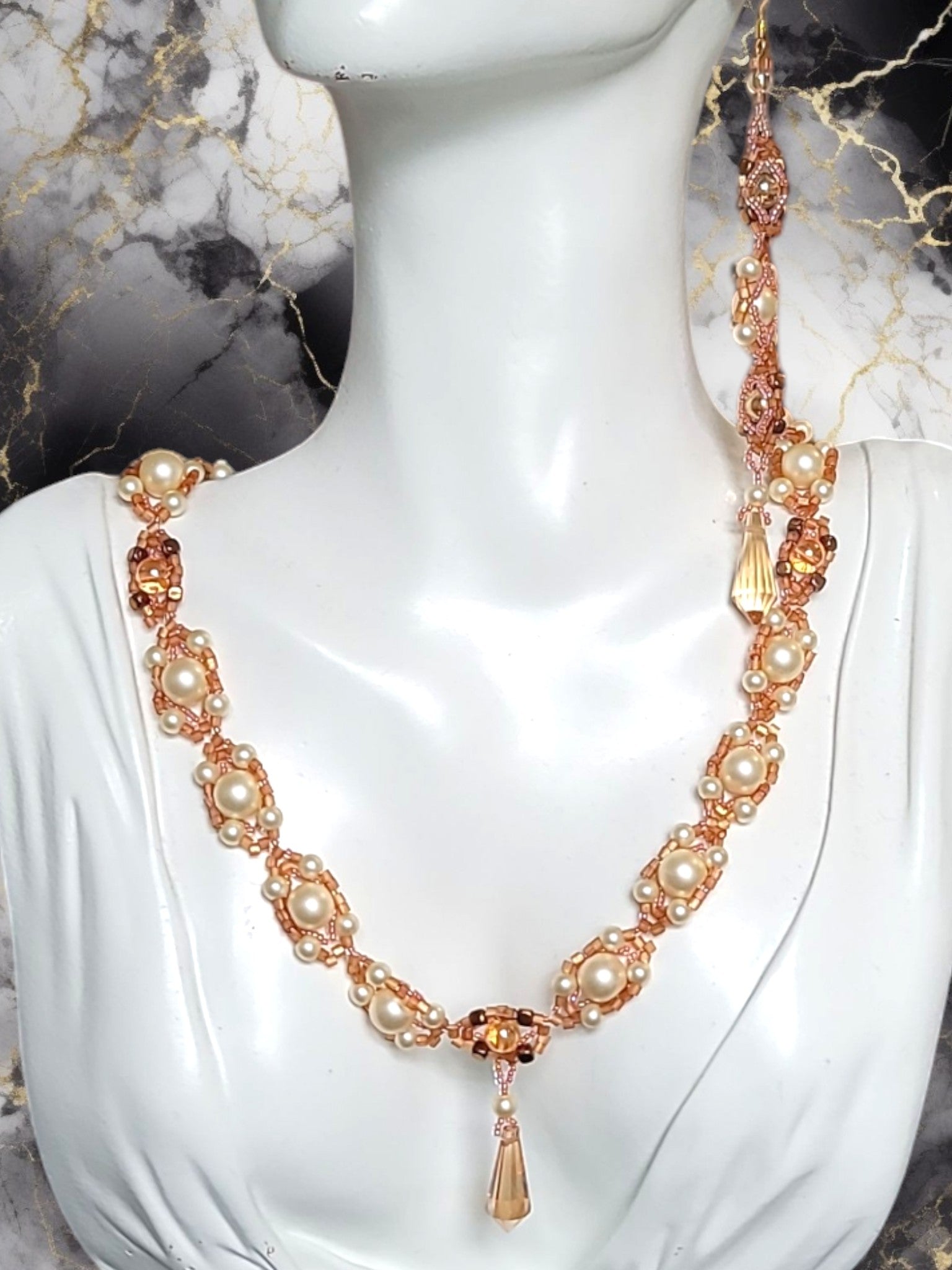 Materials: Champagne Swarovski crystals and pearls